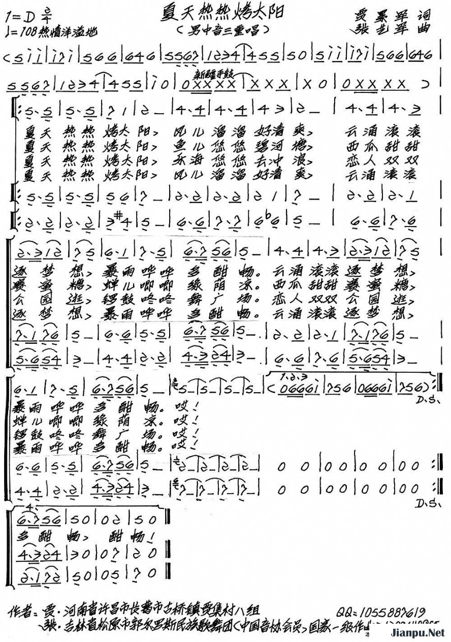 >>夏天热热烤太阳简谱_贾累军词/张艺军曲_吉他谱_钢琴谱_简谱