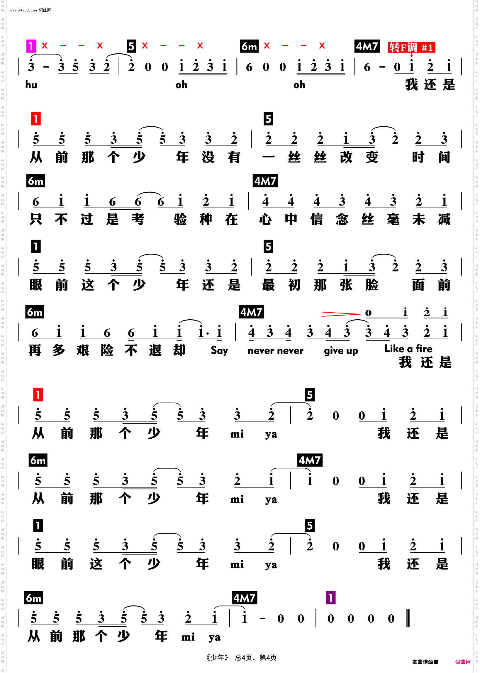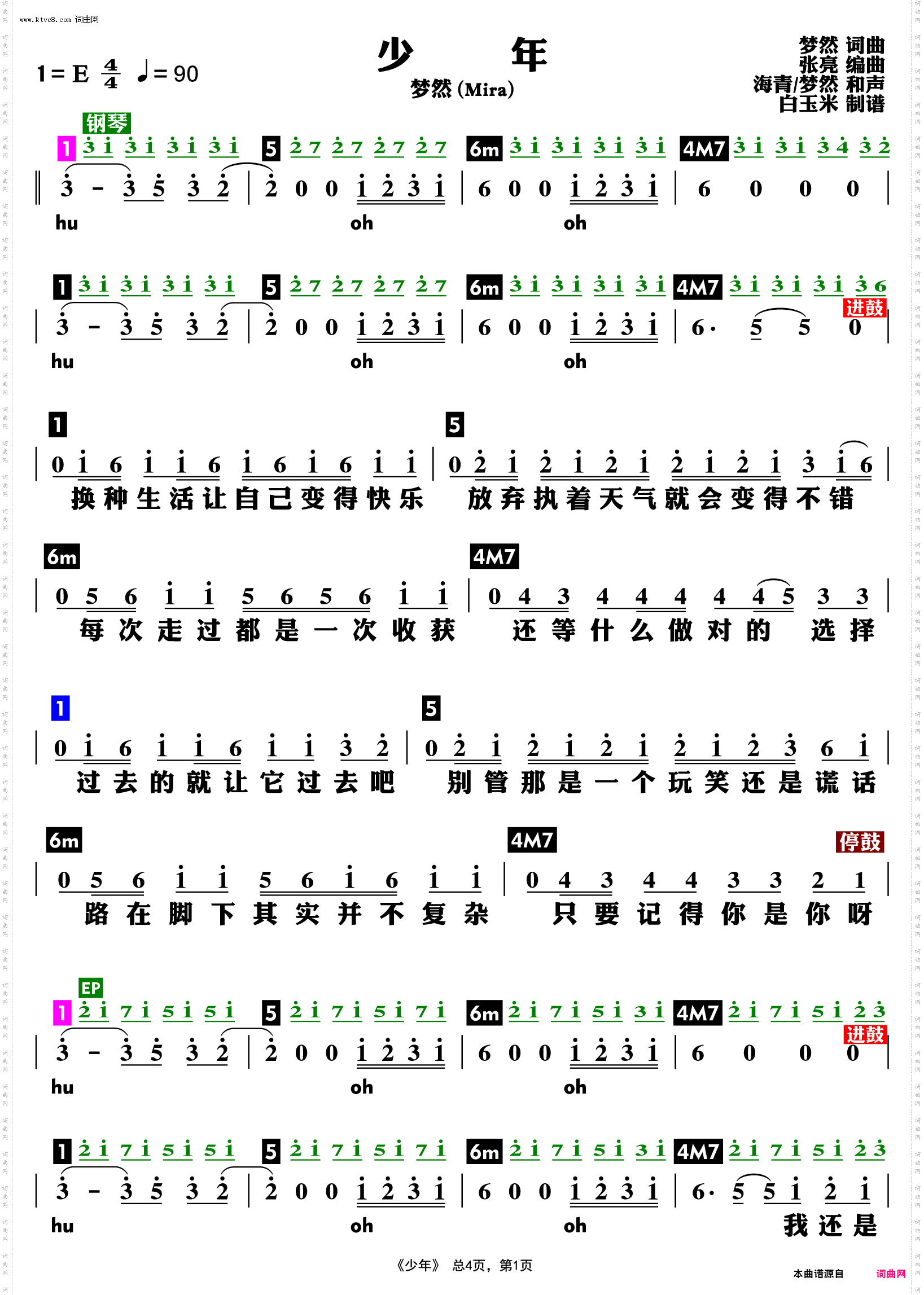 少年简谱_梦然演唱_梦然/梦然词曲_吉他谱_钢琴谱_简谱