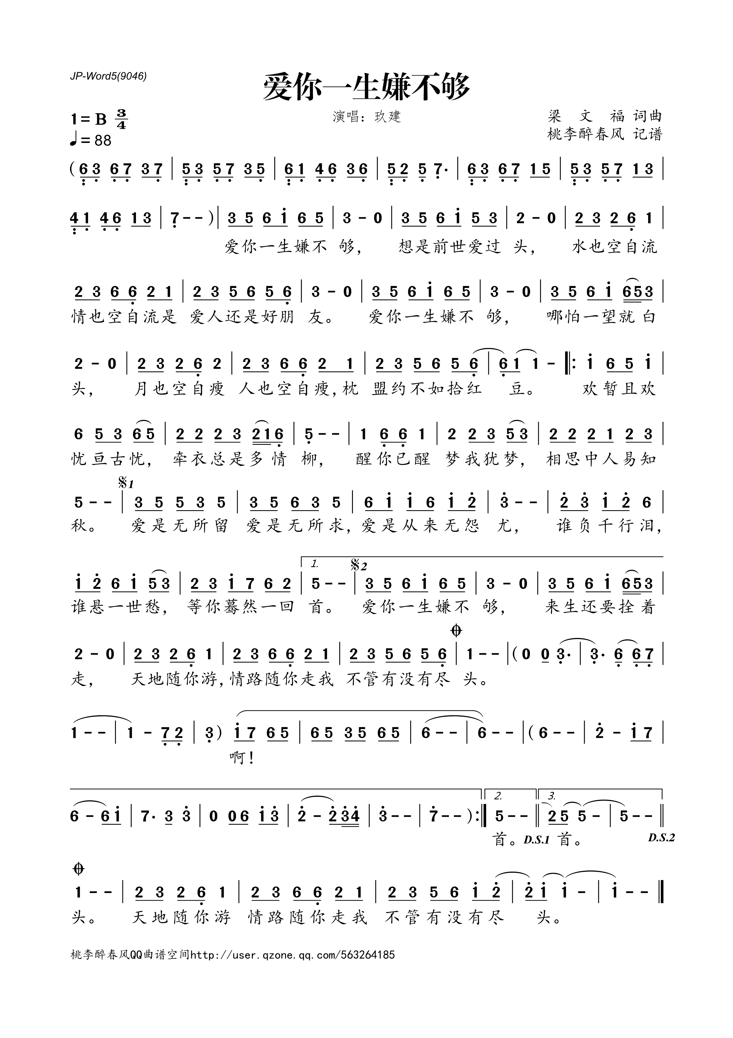 >>爱你一生嫌不够(简谱)