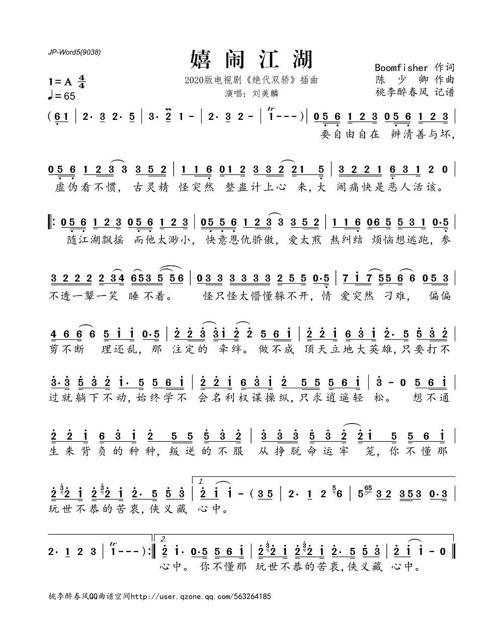 >>嬉闹江湖(2020版电视剧《绝代双骄》插曲)(简谱)