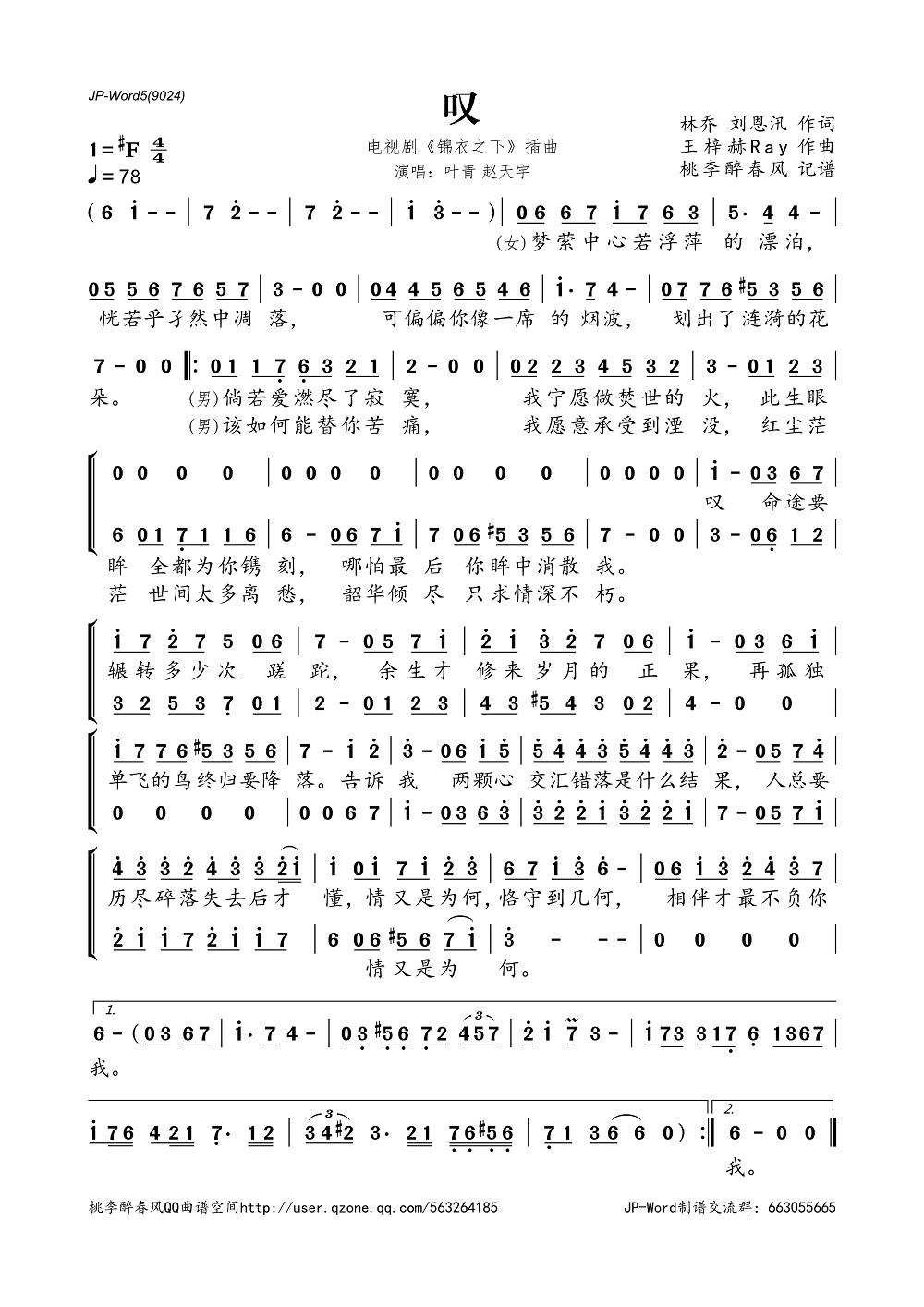 >>叹(电视剧《锦衣之下》插曲)(简谱)