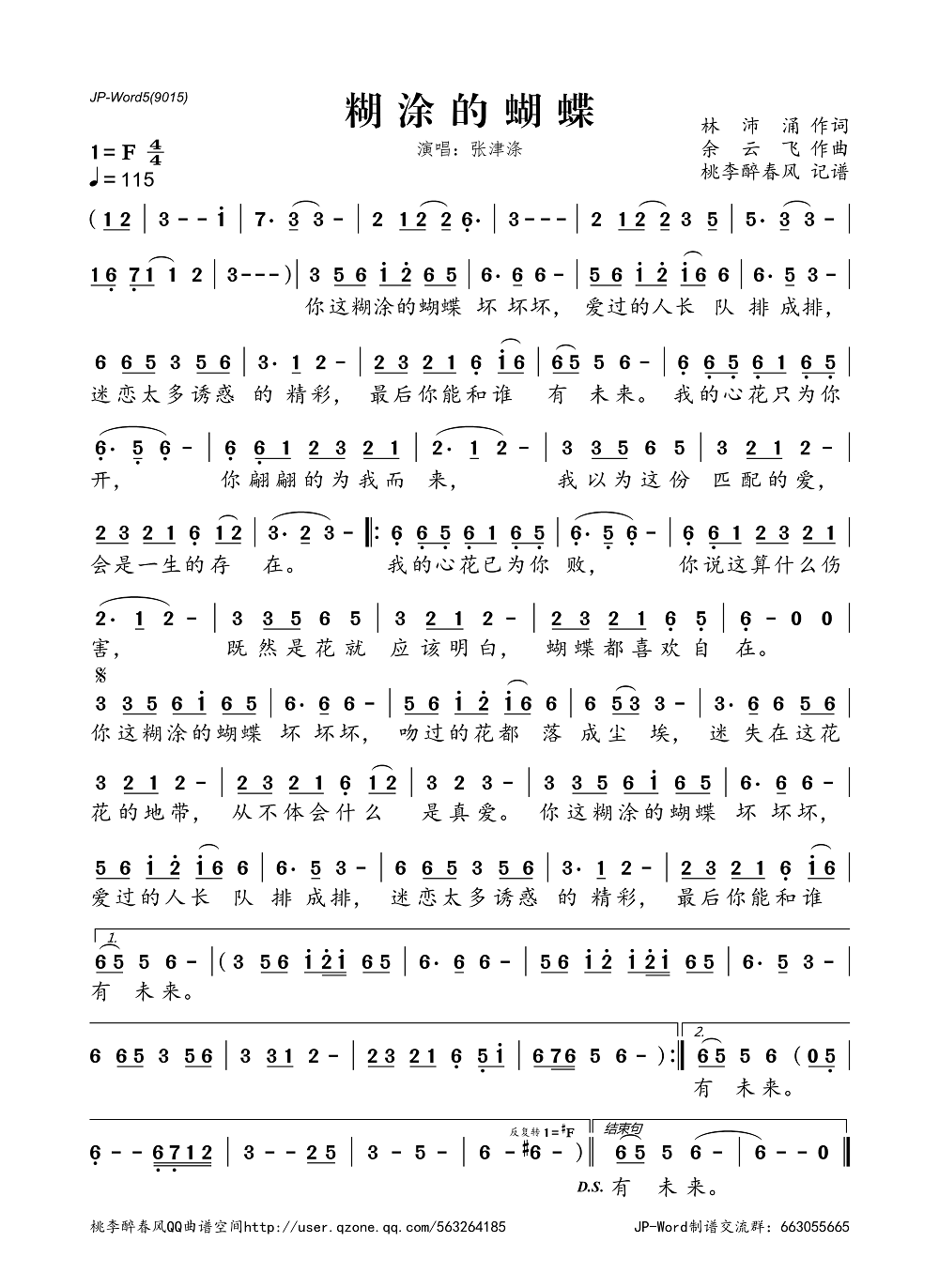 >>糊涂的蝴蝶(简谱)