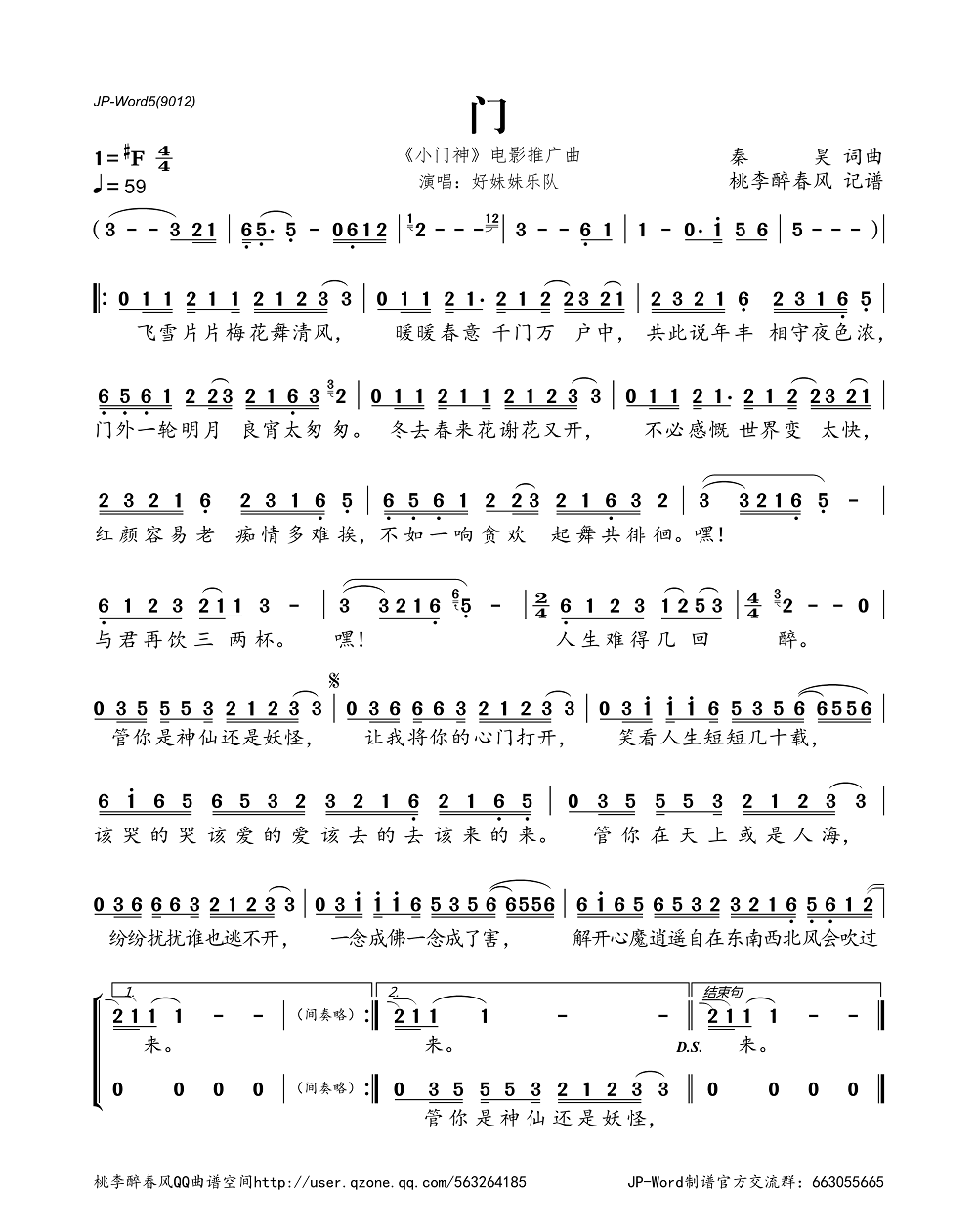 门(《小门神》电影推广曲)(简谱)