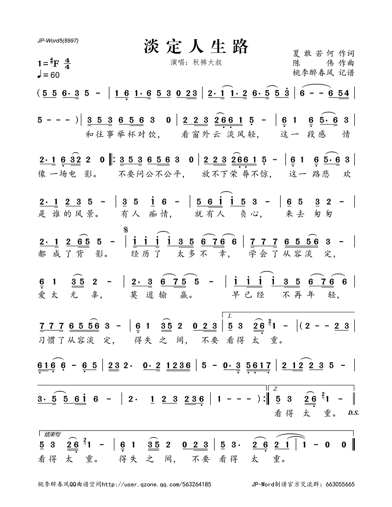>>淡定人生路(简谱)