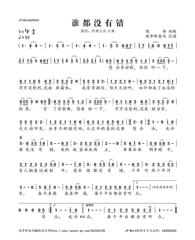 谁都没有错(简谱)