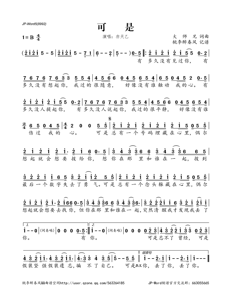 可是(简谱)