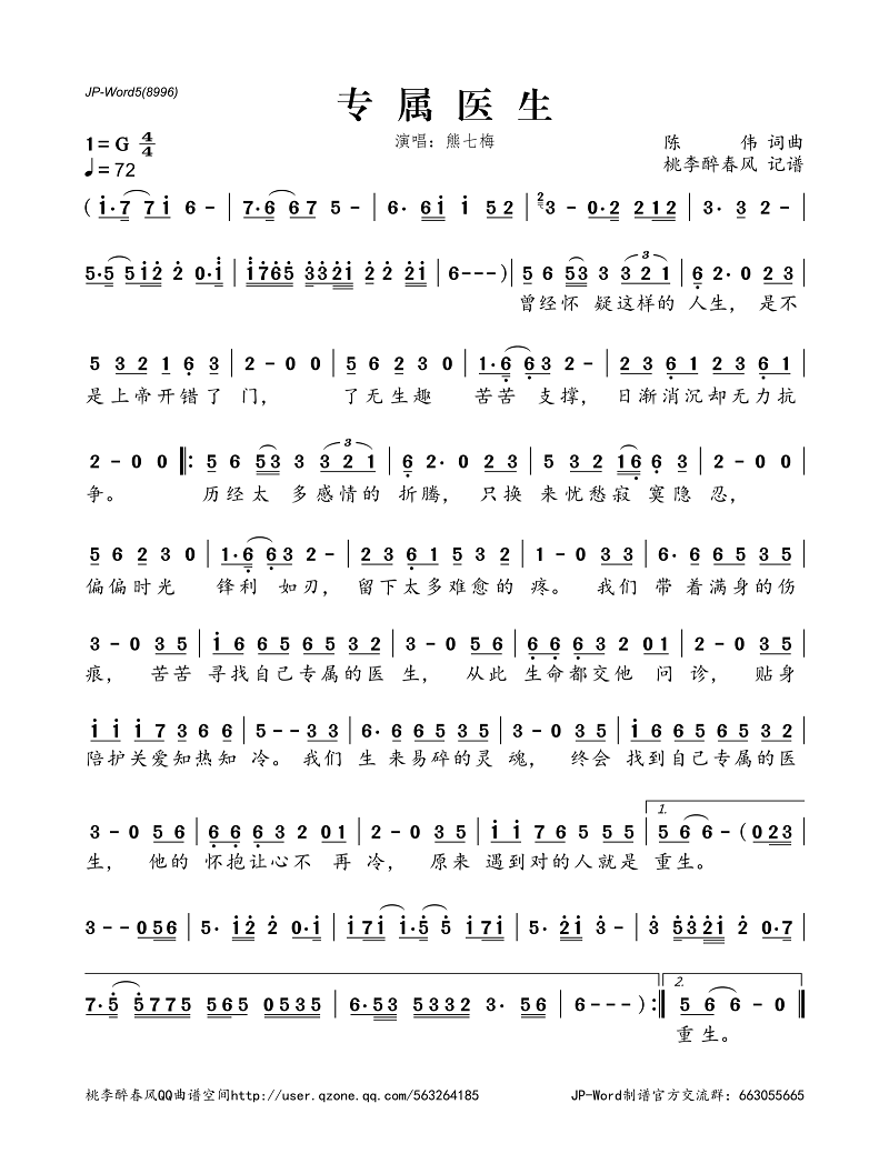 专属医生(简谱)