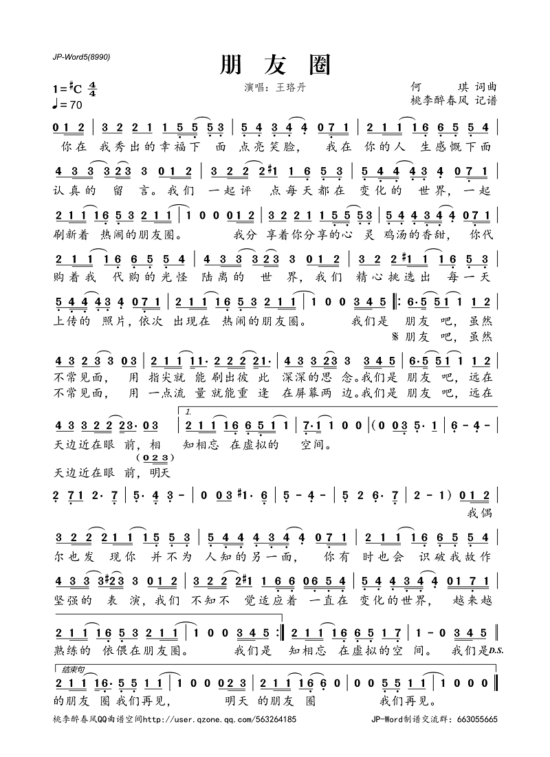 朋友圈——王珞丹(简谱)