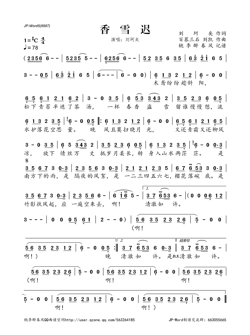 >>香雪迟(简谱)
