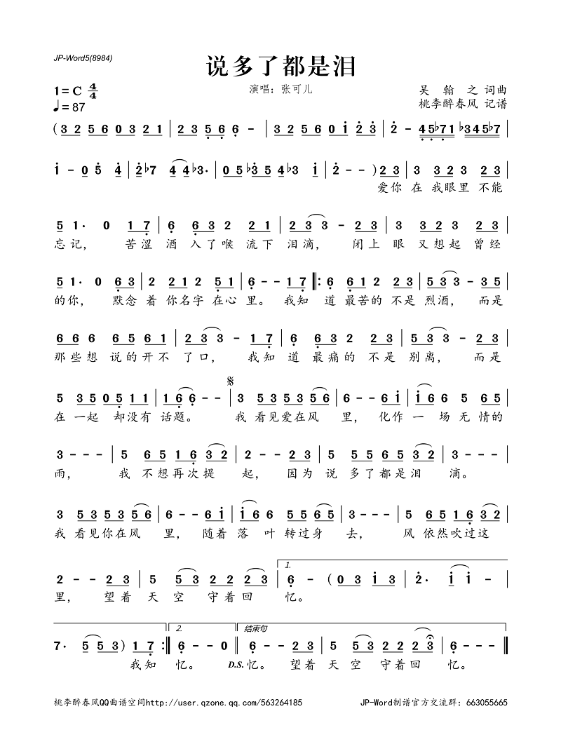 >>说多了都是泪(简谱)