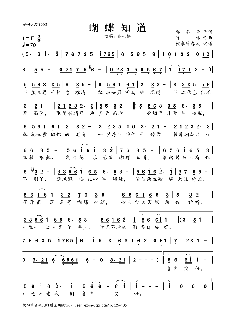 蝴蝶知道(简谱)