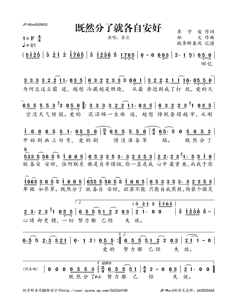 >>既然分了就各自安好(简谱)