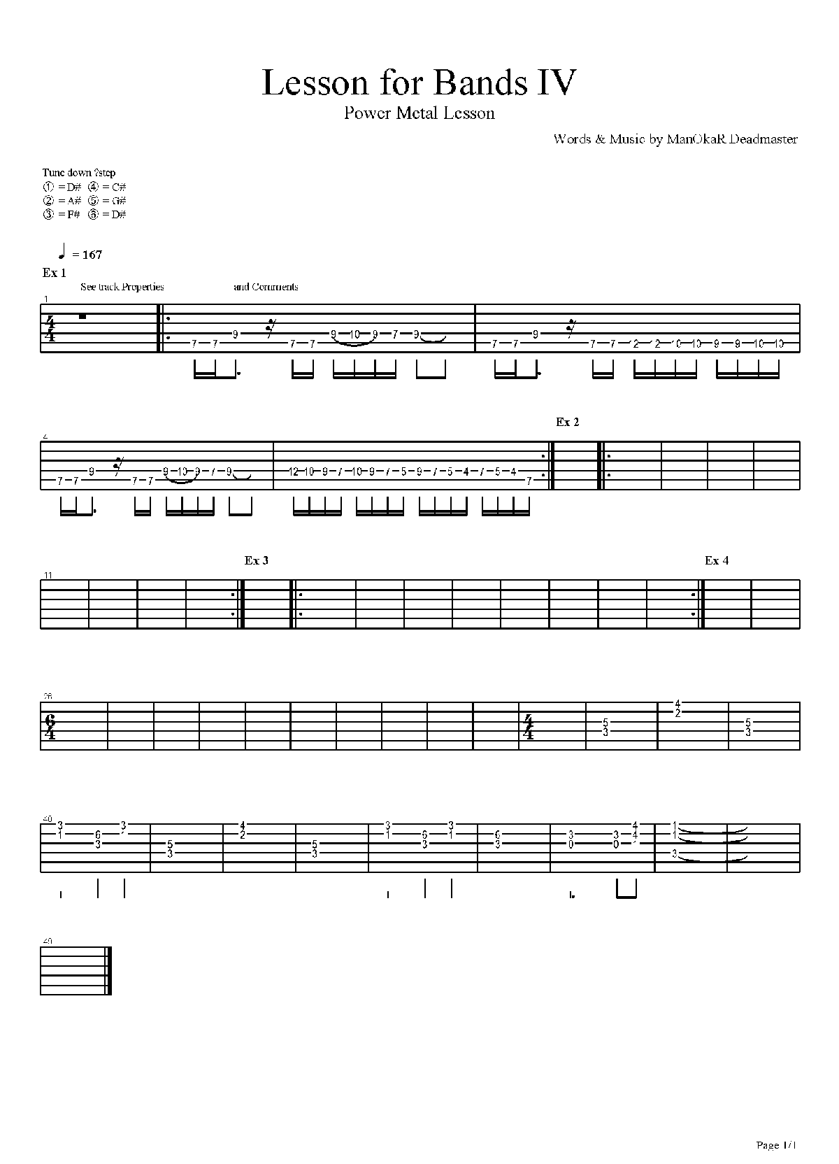 电吉他练习谱《Heavy Metal Guitar School - Lesson For Bands IV》简谱五线谱附歌词是乐器资源网于2017年04月02日 10:16:10整理更新,内容收录在电吉他乐谱栏目;乐器资源网免费分享专业、准确、规范、高清的电吉他乐谱简谱五线谱歌词等电子版资料,欢迎在线免费下载;乐器资源网无需注册会员,即可直接免费下载各类乐器学习相关资源。