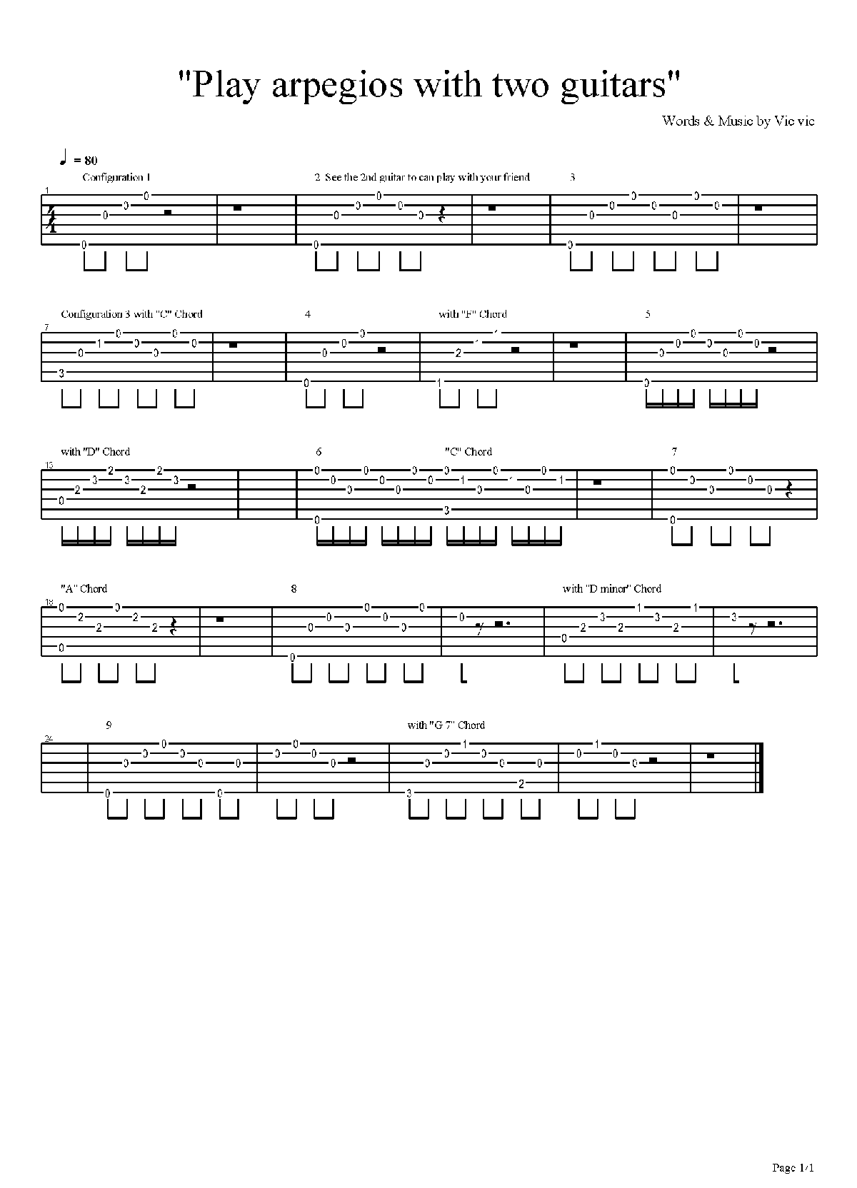 电吉他练习谱《Cool Exercise - Two guitars arpegios》简谱五线谱附歌词是乐器资源网于2017年04月01日 18:15:48整理更新,内容收录在电吉他乐谱栏目;乐器资源网免费分享专业、准确、规范、高清的电吉他乐谱简谱五线谱歌词等电子版资料,欢迎在线免费下载;乐器资源网无需注册会员,即可直接免费下载各类乐器学习相关资源。