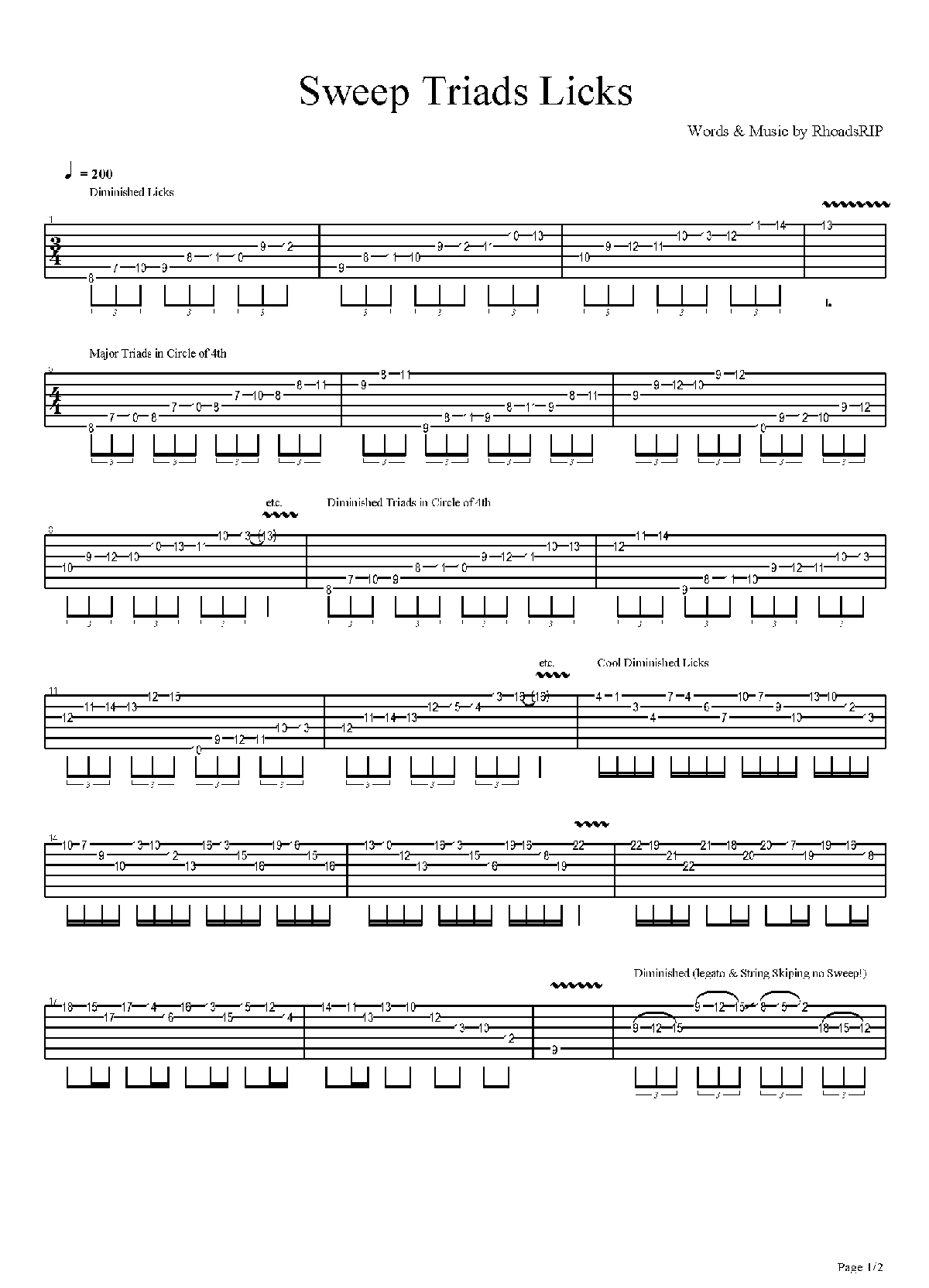 Sweep Excercises - Sweep Diminished Triads (& one major tria简谱五线谱附歌词是乐器资源网于2017年04月02日 11:09:50整理更新,内容收录在电吉他乐谱栏目;乐器资源网免费分享专业、准确、规范、高清的电吉他乐谱简谱五线谱歌词等电子版资料,欢迎在线免费下载;乐器资源网无需注册会员,即可直接免费下载各类乐器学习相关资源。