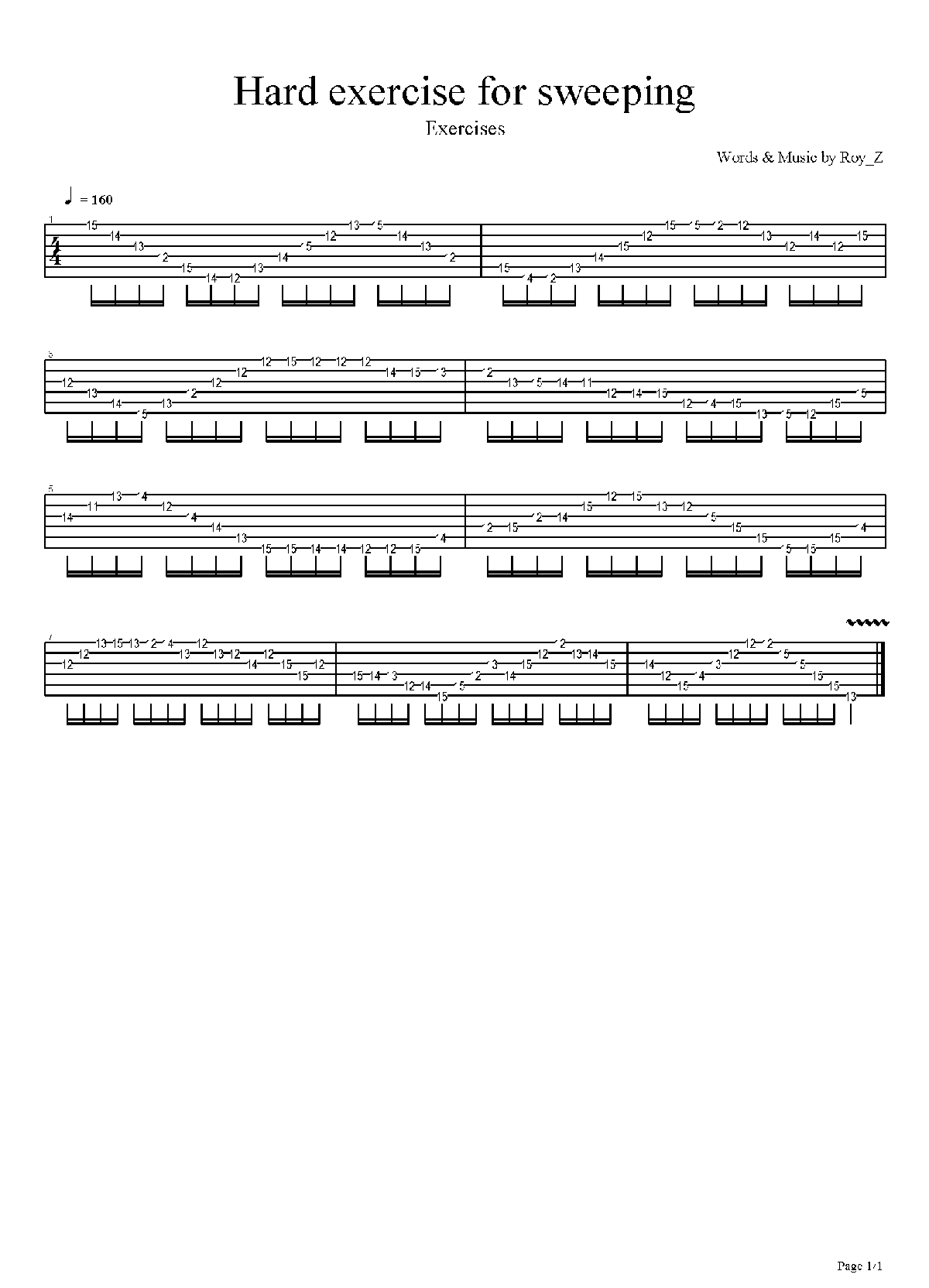 Sweep Excercises - Hard exercise for Sweeping简谱五线谱附歌词是乐器资源网于2017年04月02日 11:08:11整理更新,内容收录在电吉他乐谱栏目;乐器资源网免费分享专业、准确、规范、高清的电吉他乐谱简谱五线谱歌词等电子版资料,欢迎在线免费下载;乐器资源网无需注册会员,即可直接免费下载各类乐器学习相关资源。