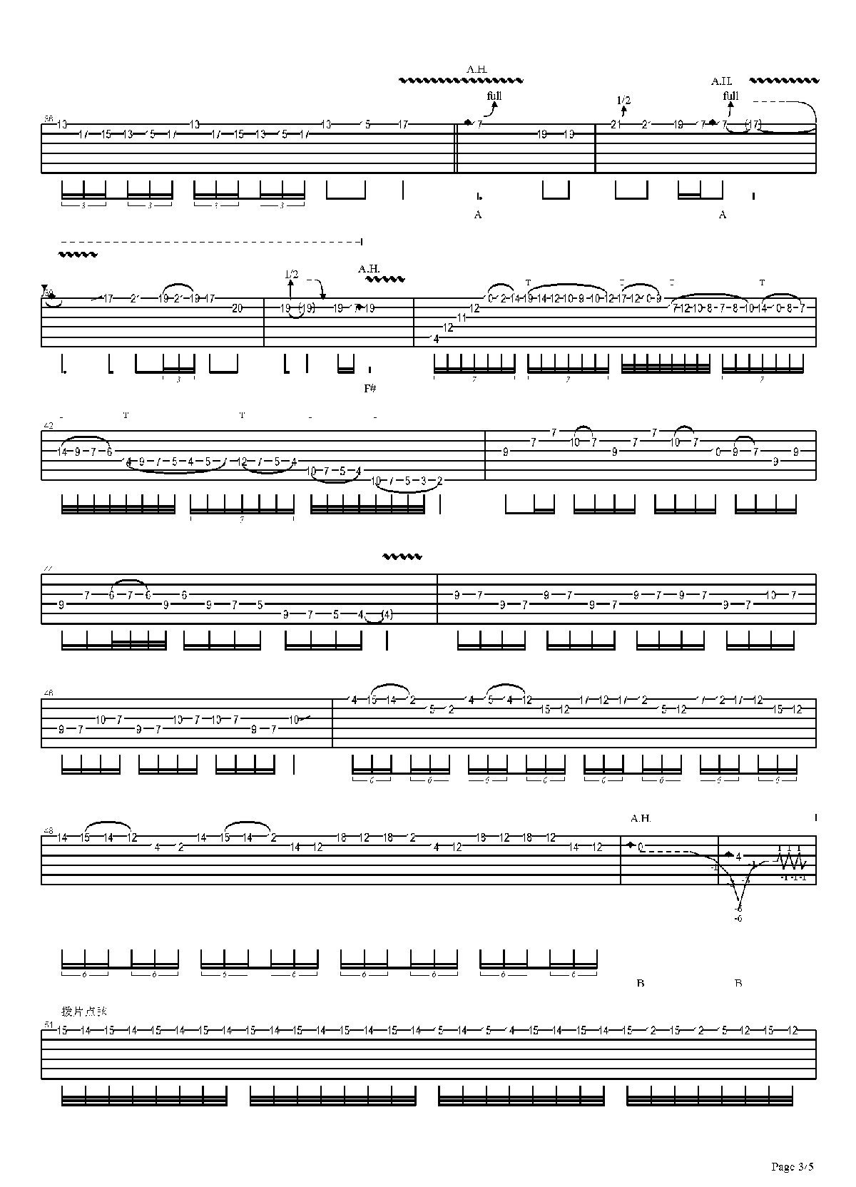 电吉他基本功练习曲谱《地狱魔鬼练习》