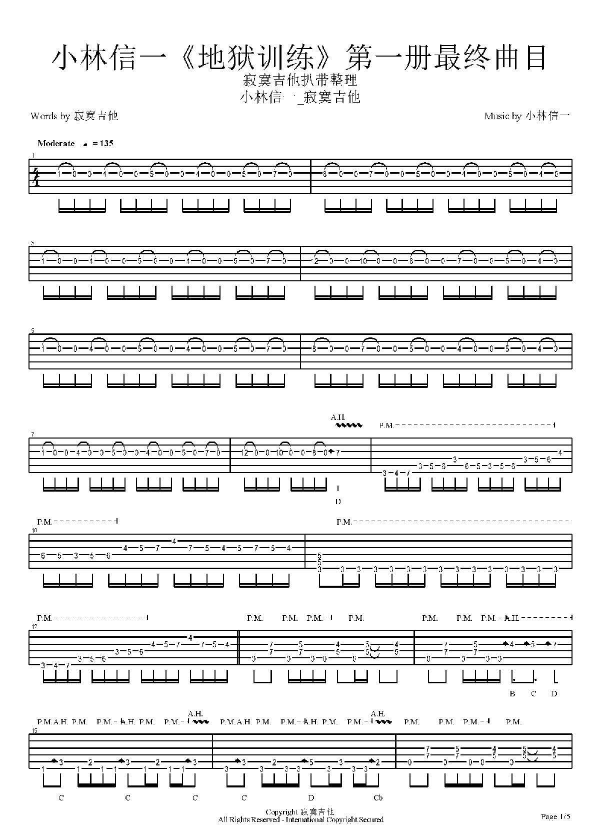 电吉他基本功练习曲谱《地狱魔鬼练习》简谱五线谱附歌词是乐器资源网于2017年04月02日 11:15:19整理更新,内容收录在电吉他乐谱栏目;乐器资源网免费分享专业、准确、规范、高清的电吉他乐谱简谱五线谱歌词等电子版资料,欢迎在线免费下载;乐器资源网无需注册会员,即可直接免费下载各类乐器学习相关资源。