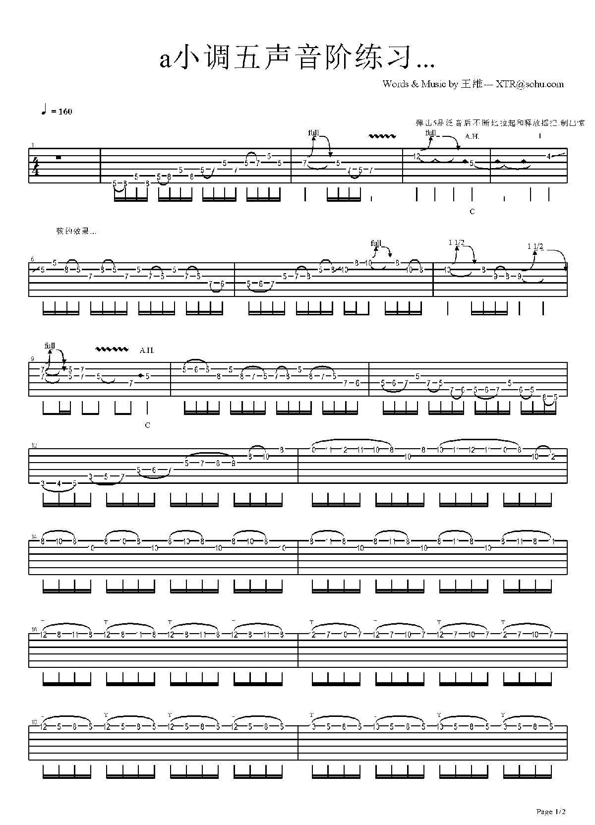 电吉他练习谱《A小调五声音阶练习》简谱五线谱附歌词是乐器资源网于2017年04月01日 17:08:38整理更新,内容收录在电吉他乐谱栏目;乐器资源网免费分享专业、准确、规范、高清的电吉他乐谱简谱五线谱歌词等电子版资料,欢迎在线免费下载;乐器资源网无需注册会员,即可直接免费下载各类乐器学习相关资源。