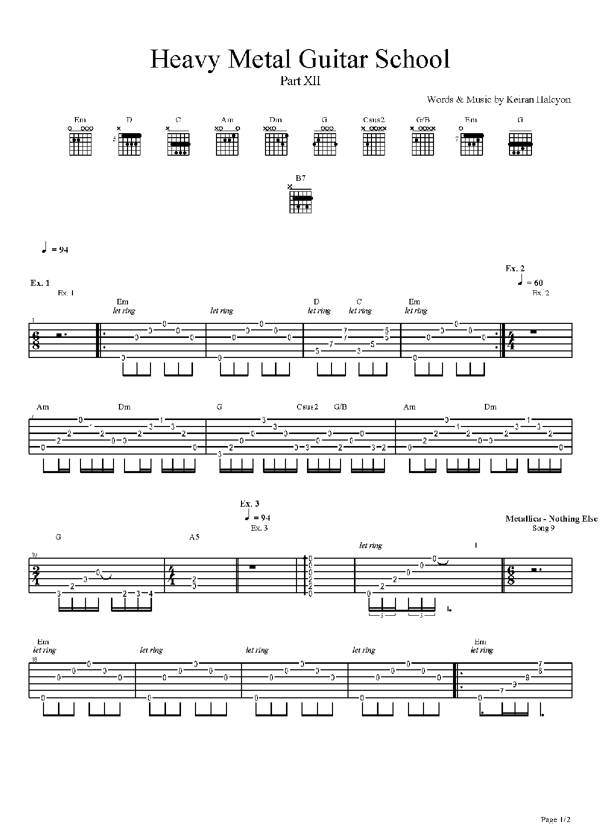 电吉他练习谱《Heavy Metal Guitar School - Part XII》简谱五线谱附歌词是乐器资源网于2017年04月02日 10:46:33整理更新,内容收录在电吉他乐谱栏目;乐器资源网免费分享专业、准确、规范、高清的电吉他乐谱简谱五线谱歌词等电子版资料,欢迎在线免费下载;乐器资源网无需注册会员,即可直接免费下载各类乐器学习相关资源。