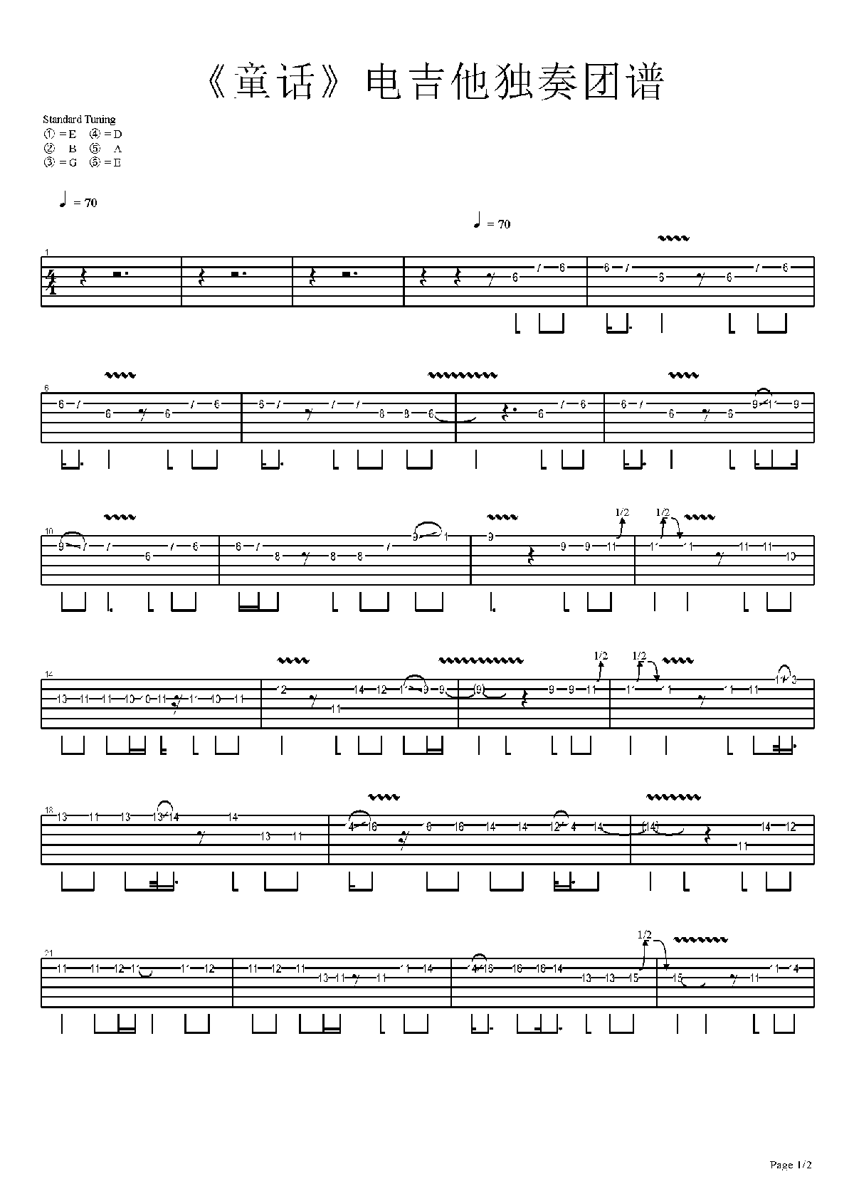 电吉他谱《童话》电吉他独奏团谱_电吉他乐谱