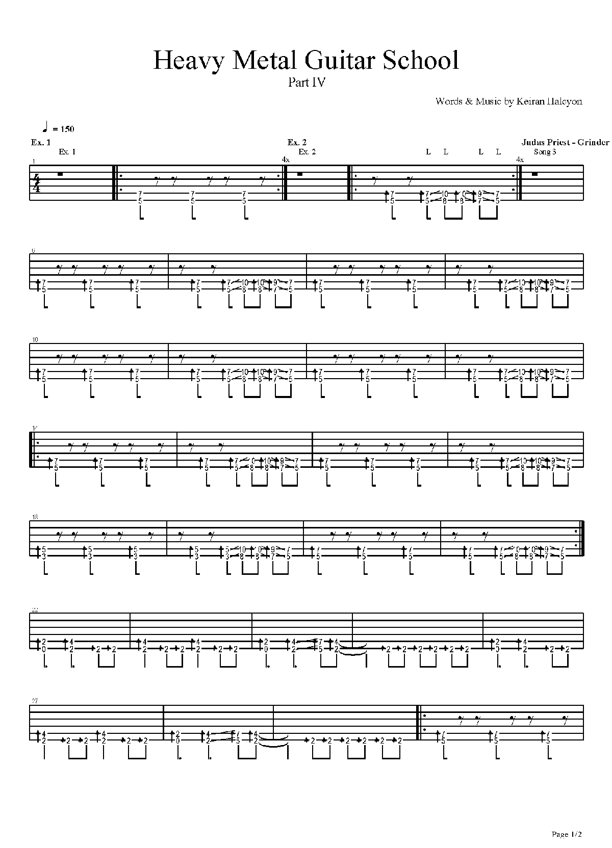 电吉他练习谱《Heavy Metal Guitar School - Part IV》简谱五线谱附歌词是乐器资源网于2017年04月02日 10:22:43整理更新,内容收录在电吉他乐谱栏目;乐器资源网免费分享专业、准确、规范、高清的电吉他乐谱简谱五线谱歌词等电子版资料,欢迎在线免费下载;乐器资源网无需注册会员,即可直接免费下载各类乐器学习相关资源。