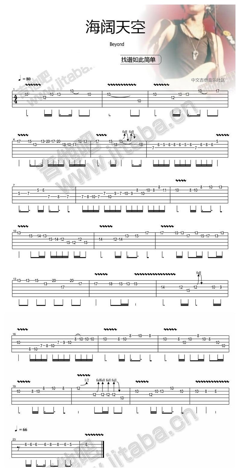 电吉他谱【海阔天空电吉他solo】Beyond 演唱简谱五线谱附歌词是乐器资源网于2015年04月18日 17:41:33整理更新,内容收录在电吉他乐谱栏目;乐器资源网免费分享专业、准确、规范、高清的电吉他乐谱简谱五线谱歌词等电子版资料,欢迎在线免费下载;乐器资源网无需注册会员,即可直接免费下载各类乐器学习相关资源。