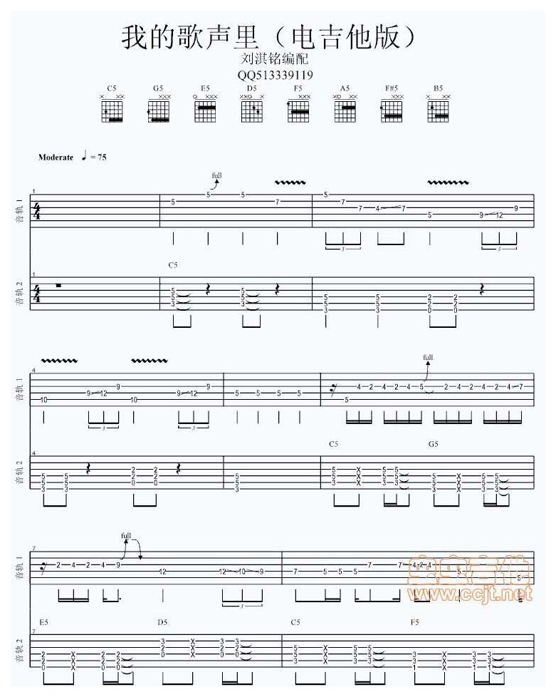 电吉他谱【我的歌声里】曲婉婷简谱五线谱附歌词是乐器资源网于2015年04月18日 17:47:30整理更新,内容收录在电吉他乐谱栏目;乐器资源网免费分享专业、准确、规范、高清的电吉他乐谱简谱五线谱歌词等电子版资料,欢迎在线免费下载;乐器资源网无需注册会员,即可直接免费下载各类乐器学习相关资源。