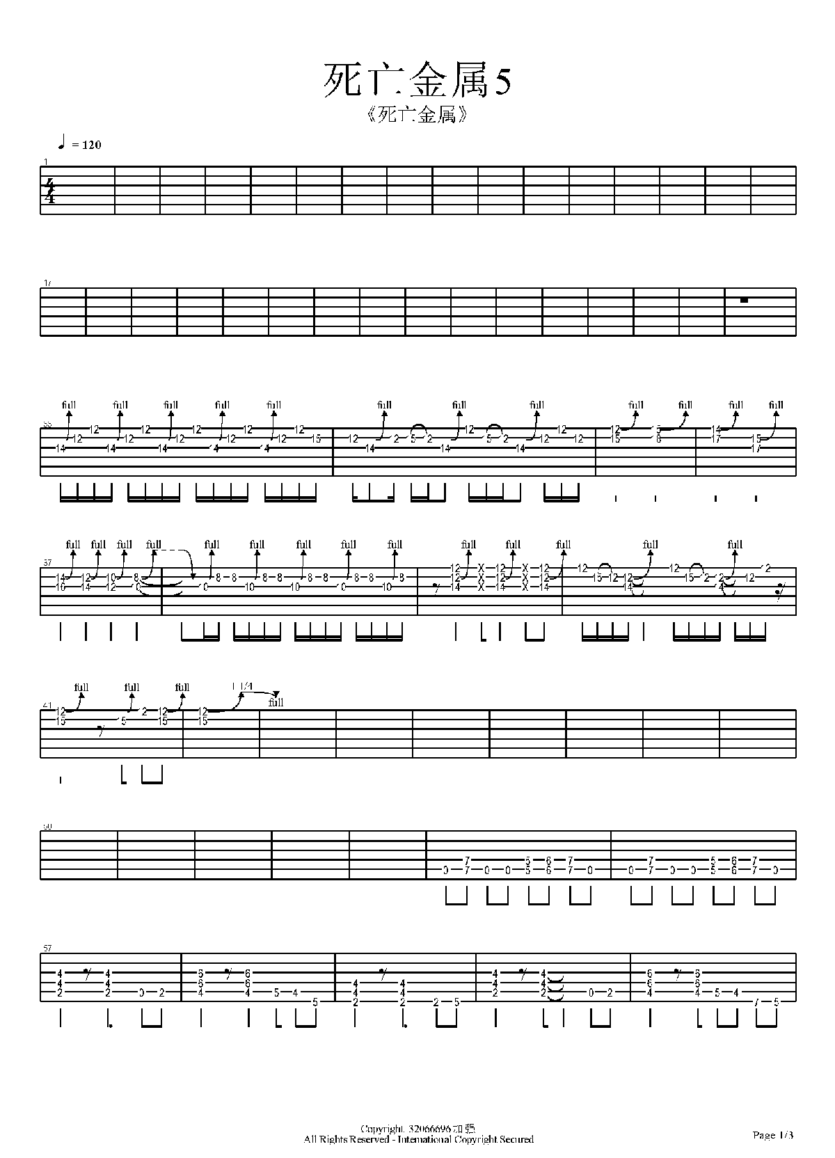 电吉他基本功练习曲谱《死亡金属5》简谱五线谱附歌词是乐器资源网于2017年04月02日 11:24:47整理更新,内容收录在电吉他乐谱栏目;乐器资源网免费分享专业、准确、规范、高清的电吉他乐谱简谱五线谱歌词等电子版资料,欢迎在线免费下载;乐器资源网无需注册会员,即可直接免费下载各类乐器学习相关资源。